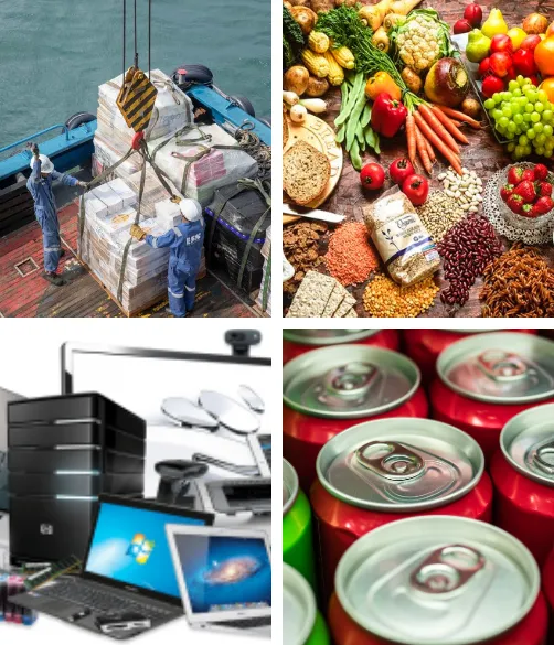 • Fresh, frozen, chilled, tinned, groceries local and imported